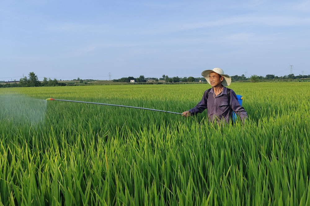 陳廷海在稻田里打藥施肥。受訪者供圖