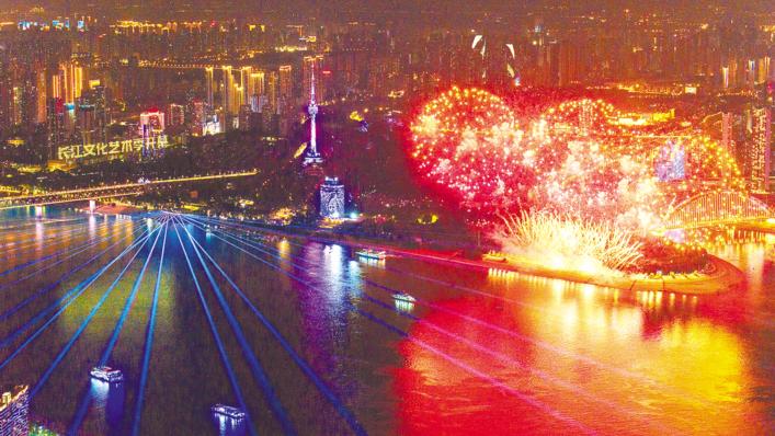 9月14日晚,燈火璀璨、光影交織,長江文化藝術(shù)季開幕式在武漢兩江四岸壯麗上演。(湖北日報全媒記者 何宇欣 攝)