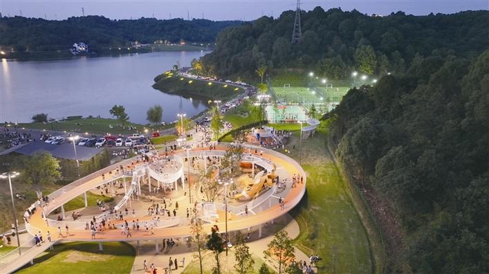 從野林子、低洼地,到高顏值、多功能。六泉湖體育公園占地約10萬平方米,于2022年8月開工建設,2022年12月完成環湖健身步道、沿線生態修復和運動場等主體內容,去年8月完成夜景燈光亮化、沿線房屋外立面及環境整治等,形成了以六泉湖市民廣場、六眼沖水庫、六泉湖森林為基礎的中央綠心休閑空間,為市民休閑運動提供了良好的場所。