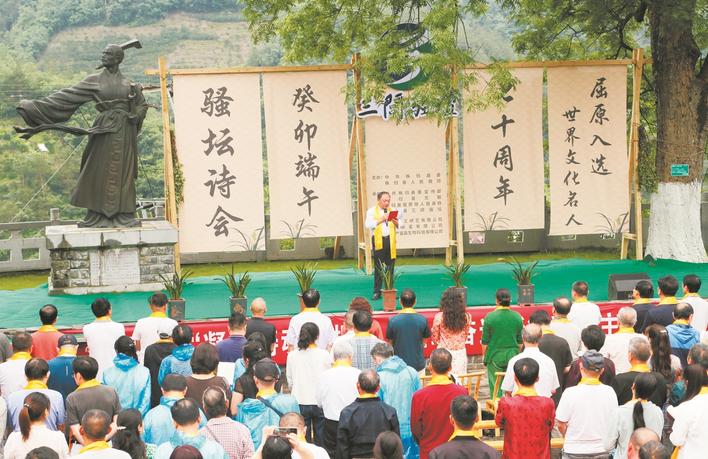“1982年,我們恢復詩社開展詩歌活動,互相交流,吟唱詩作,一直到現在,四十幾年不曾間斷。如今,社員已經增加到130多名、共創作3萬多首詩歌。”“中國第一農民詩社”三閭騷壇副社長譚國粹介紹,騷壇詩社因屈原而產生,因屈原而發展。