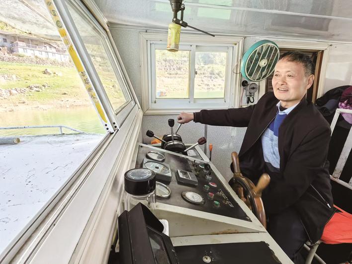 12月11日,一串“突突突”的馬達聲打破了宜昌市夷陵區西北口水庫的寧靜,“義渡人”李作玉駕駛“幸福999”號義渡船,接送村民出行,船艙內傳來村民陣陣歡笑。