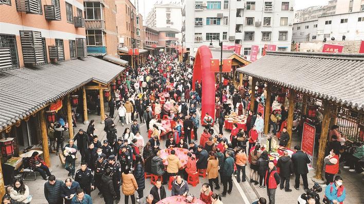 乙巳蛇年春節臨近,1月22日,竹山縣“共同締造一家親、老街味道一家人”為主題的迎春百家宴盛大“開席”,2000余名市民和游客圍坐一起嘗佳肴、送祝福、共品“幸福味”。