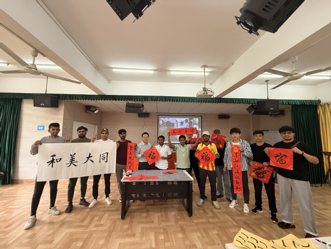 “這幾個(gè)字寓意著世界文明和諧共存,人類社會(huì)和平繁榮?!苯虒W(xué)展示中,曹曉斌在宣紙上寫下了“和美大同”四個(gè)大字,留學(xué)生們的笑容在東方哲學(xué)的溫潤(rùn)中定格。