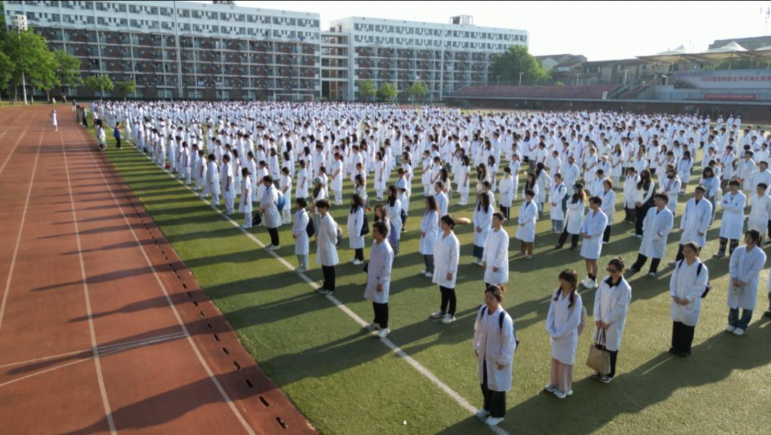為慶祝第114個國際護(hù)士節(jié),5月12日上午7時,武漢城市學(xué)院醫(yī)學(xué)部近兩千名師生,身著護(hù)士服參加“5.12國際護(hù)士節(jié)”升旗儀式暨集體宣誓大會。醫(yī)學(xué)部黨總支書記杜征帆主持升旗儀式。學(xué)校副校長趙光紅出席,全體輔導(dǎo)員參加升旗儀式。