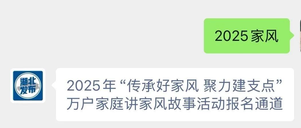 為深入學習貫徹習近平總書記關于注重家庭家教家風建設的重要論述,貫徹落實黨的二十大及二十屆二中、三中全會精神,讓家風建設成為凝聚湖北加快建成支點的磅礴力量,湖北省文明辦、湖北省婦聯定于5月15日(國際家庭日)開啟2025年“傳承好家風 聚力建支點”萬戶家庭講家風故事活動。