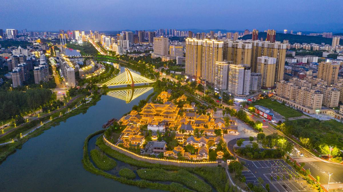 咸寧市區淦河兩岸燈光璀璨,景色宜人。(湖北日報全媒記者 魏錸 攝)