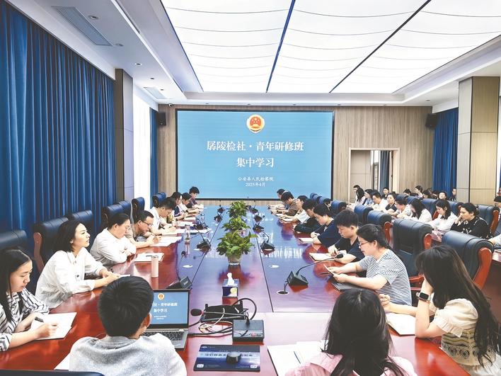 持續抓實干警學習。以40歲以下青年干警為主體,成立青年研修班,領導干部每月帶頭“上講臺”,從檢察理論與辦案實務、信息寫作與調研宣傳、工作方法與司法理念等方面,開展專題授課,將研修班打造成青年干警學習交流的“充電站”、承擔艱難險重工作任務的“應急站”。青年研修班獲評“2022-2023年荊州市青年文明號”創建集體。