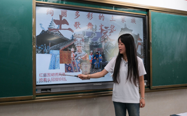 在宜昌市松木坪鎮(zhèn)鄉(xiāng)村小學(xué),湖北第二師范學(xué)院鄉(xiāng)村小學(xué)公益書院志愿服務(wù)隊(duì)精心打造了“土家族歌舞文化探秘”主題實(shí)踐課堂。志愿者化身“民族文化使者”,親身示范“擺手舞”。一時間,教室里童聲稚語齊飛揚(yáng)——有的孩子踮起腳尖,認(rèn)真模仿著擺手的身姿;有的則輕聲哼唱,努力追尋著山歌的調(diào)子。歡聲笑語與悠揚(yáng)的旋律交織,空氣中彌漫著文化交融的喜悅。