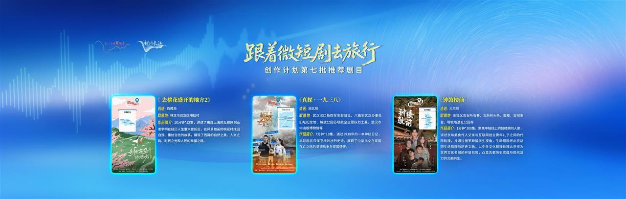 啟動式現場,國家廣電總局發布了“跟著微短劇去旅行”創作計劃第七批推薦劇目,《去桃花盛開的地方2》《真探?一九三八》等94部微短劇脫穎而出;湖北省廣播電視局發布了首屆“視聽長江”微短劇劇本大賽優秀劇本名單,《萬家燈火徹夜明》《錯過你的兩千年》等50部作品入選。