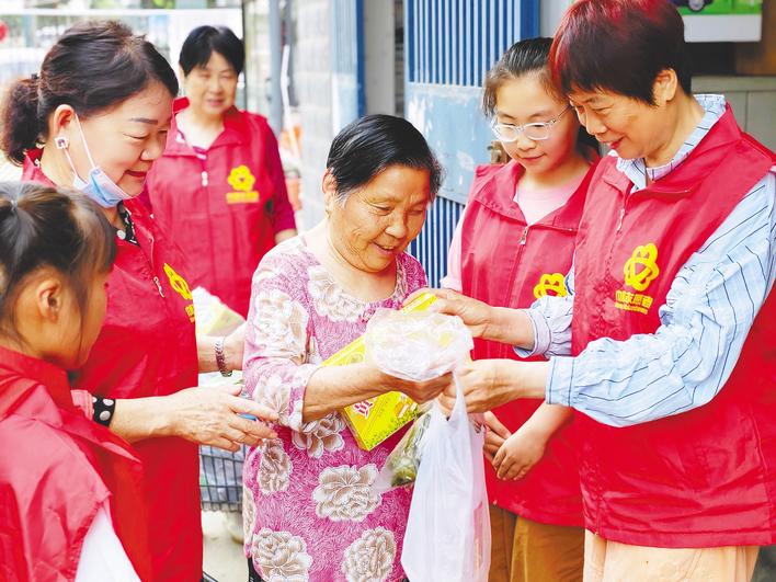 孝感高新區(qū)槐蔭辦事處在節(jié)日里組織志愿者為老人送愛心。(受訪者供圖)