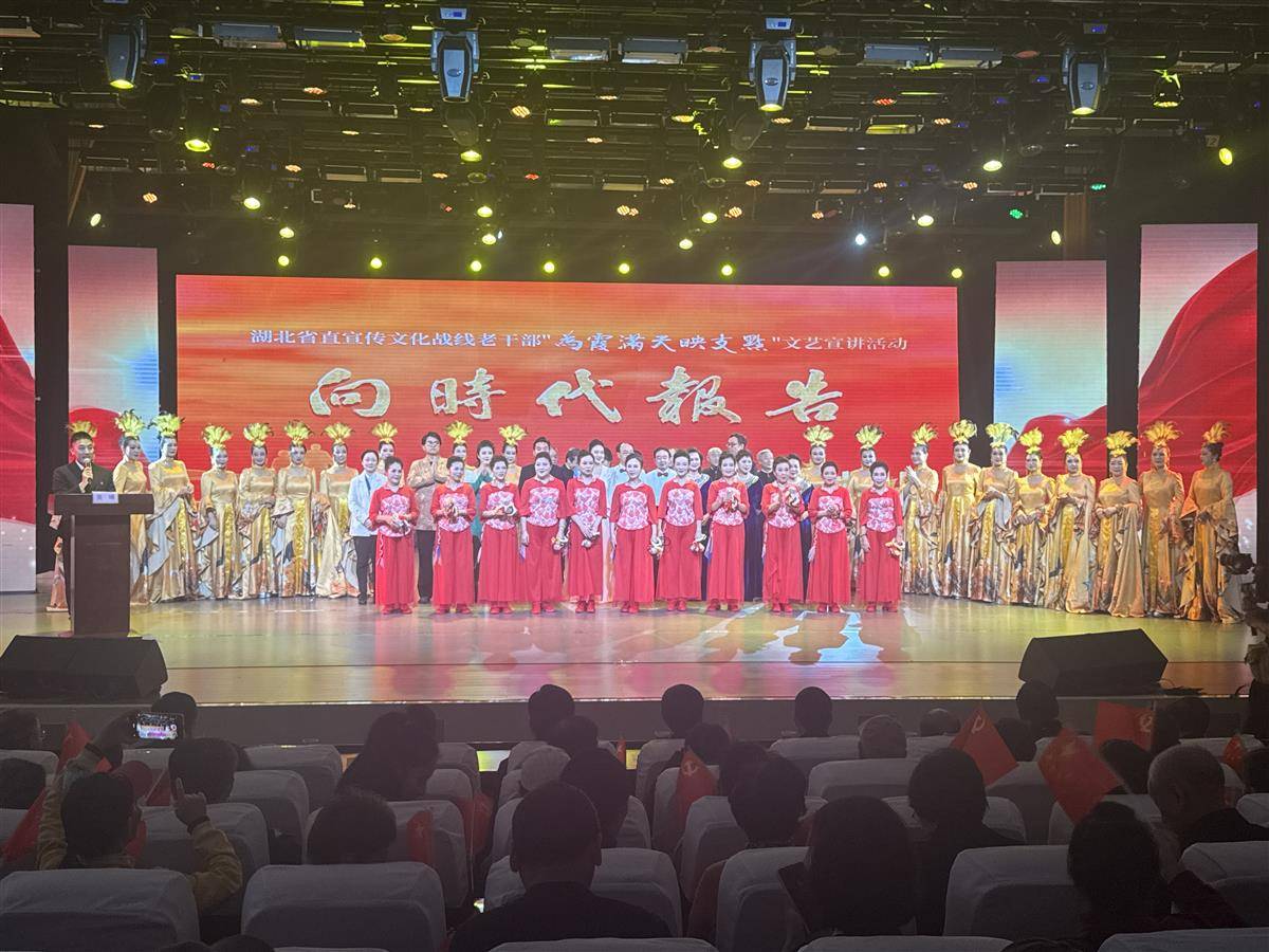 活動不僅有精彩的文藝演出,還融入了豐富的理論宣講。主持人大琦和小聰以咸豐縣清坪鎮龍潭司村村干部的角色,展開角色報告《“沙礫”書記》,講述了謝睿書記在脫貧攻堅一線無私奉獻的感人事跡,讓觀眾深刻感受到脫貧攻堅的艱辛與偉大。情景宣講《湖北,未來可期》,詳細介紹了湖北實施的七大戰略,展現了湖北未來發展的宏偉藍圖。