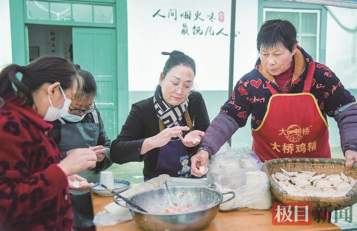 翁仁花(中)為老人包餃子 攝影:楚天都市報極目新聞記者黃志剛