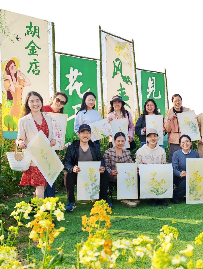 云夢縣胡金店鎮將簡牘文化融入油菜花海,吸引游客爭相打卡。 (李維亮 攝)