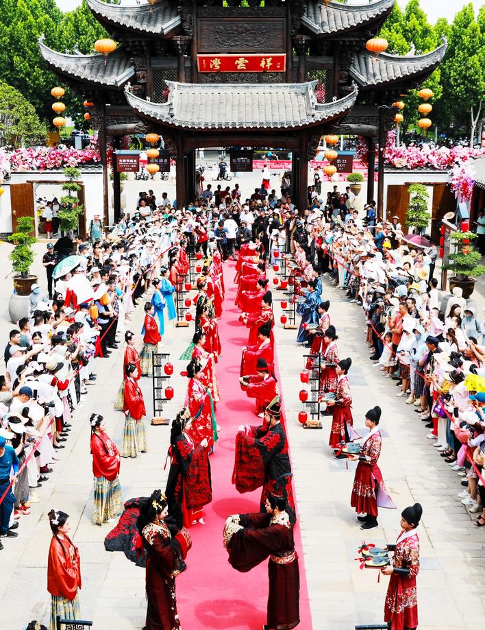 云夢祥云灣文旅度假區舉辦集體婚禮活動,新人共赴“白首之約”。 (彭雙明 攝)