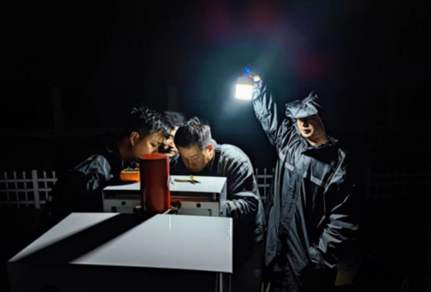荊門市氣象局打造“風云天使護萬家”黨建品牌,為保障氣象數據的采集和傳輸,連夜搶修沙洋國家基本氣象站。李鑫 攝