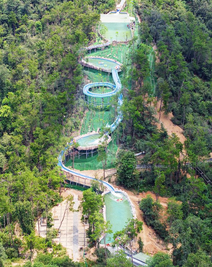 江夏利用青龍山上已有的“森林防火隔離通道”和“森林防滅火水池”,加上水池連接通道,成為非防火期的漂流通道。(湖北日報全媒記者 朱熙勇 攝)