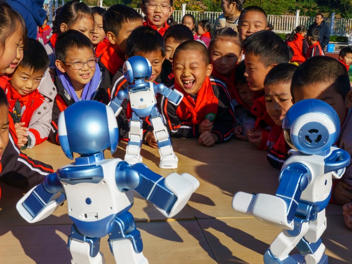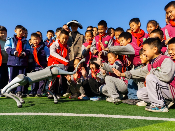 縣科協(xié)科普大篷車同步進(jìn)駐校園,帶來(lái)多樣互動(dòng)科普展品。多臺(tái)智能機(jī)器人隨著音樂(lè)節(jié)奏舞動(dòng),手臂靈活擺動(dòng)、機(jī)身精準(zhǔn)旋轉(zhuǎn);機(jī)器狗憨態(tài)可掬,在工作人員指令下精準(zhǔn)完成“坐下”“握手”“轉(zhuǎn)圈”等動(dòng)作;孩子們圍在臺(tái)前睜大眼睛,踮腳探頭,不時(shí)抬手歡呼鼓掌,滿臉驚喜與興奮,久久不愿挪步。